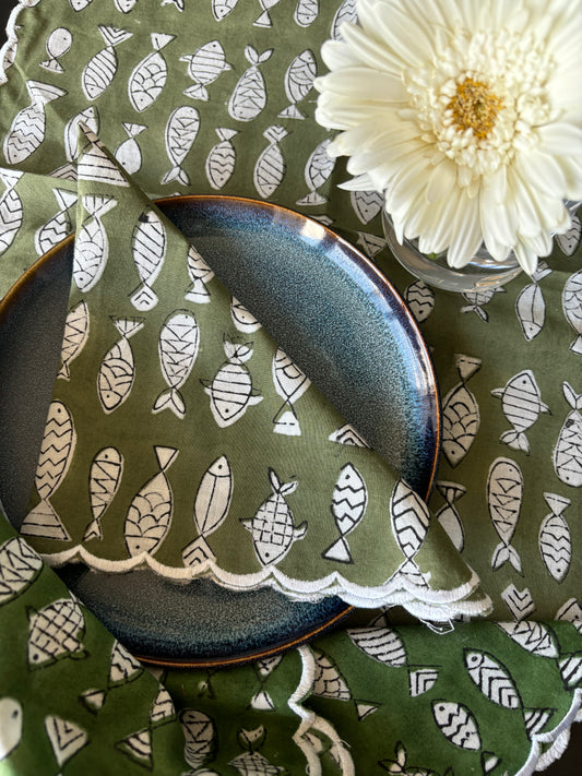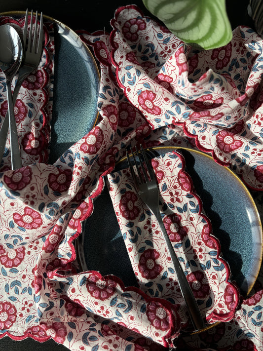 Firozi Blue & Red Scalloped Edge Table Napkin