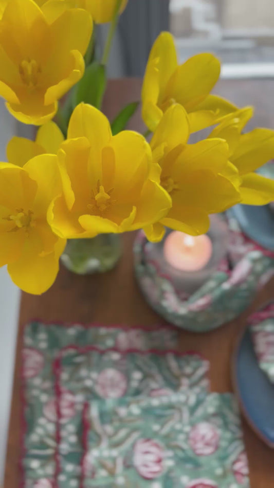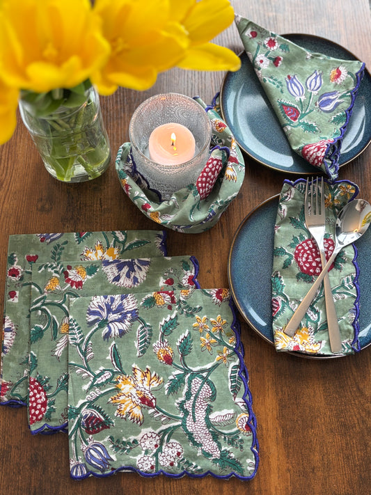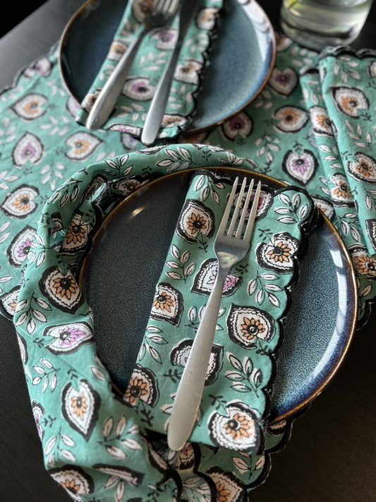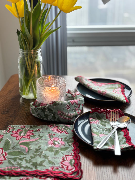 Scalloped-edged Napkins (Green & Pink Floral)