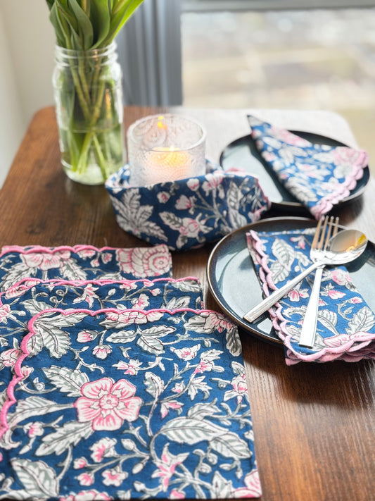 Scalloped-edged Napkins (Navy & Pink)