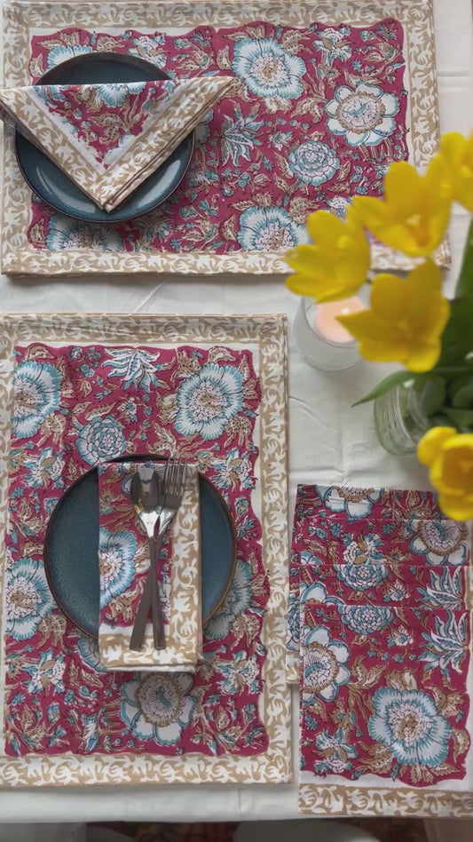 Vibrant Red Block Printed Placemat & Napkin Set