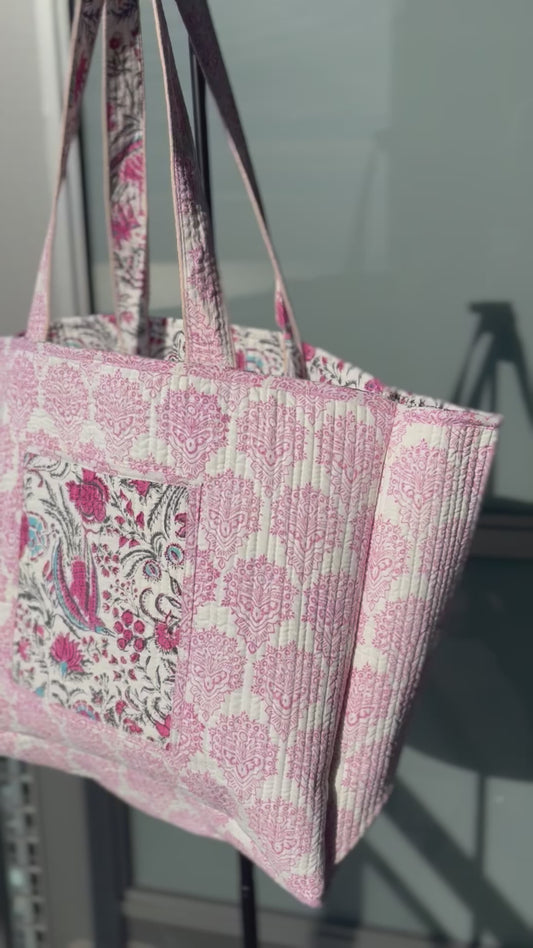 Sold outWhite & Pink Reversible Tote Bag