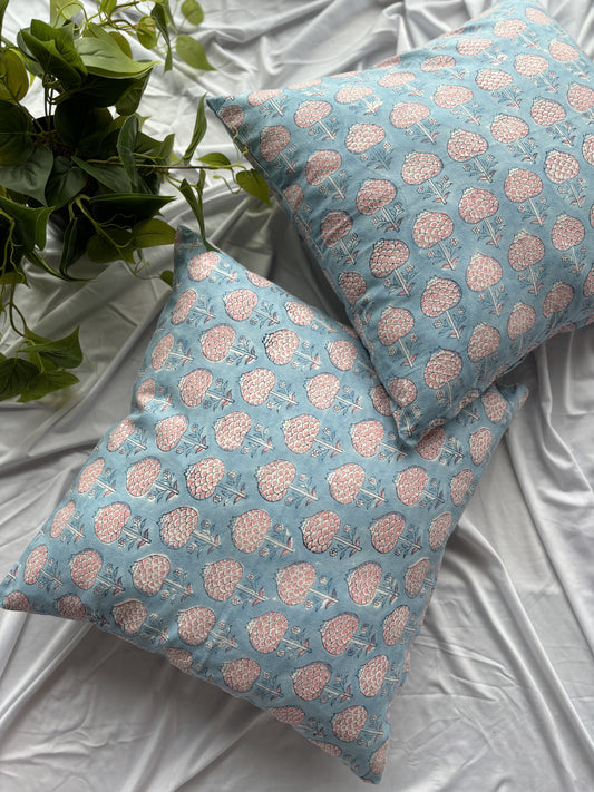 Light blue Floral Block Printed Cushion Cover (Set of 2)