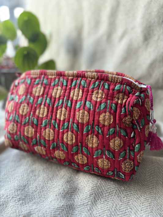 Crafted from 100% cotton fabric, our handblock printed makeup/toiletry pouches are designed to captivate. Its waterproof inner lining ensures hassle-free portability while on the go