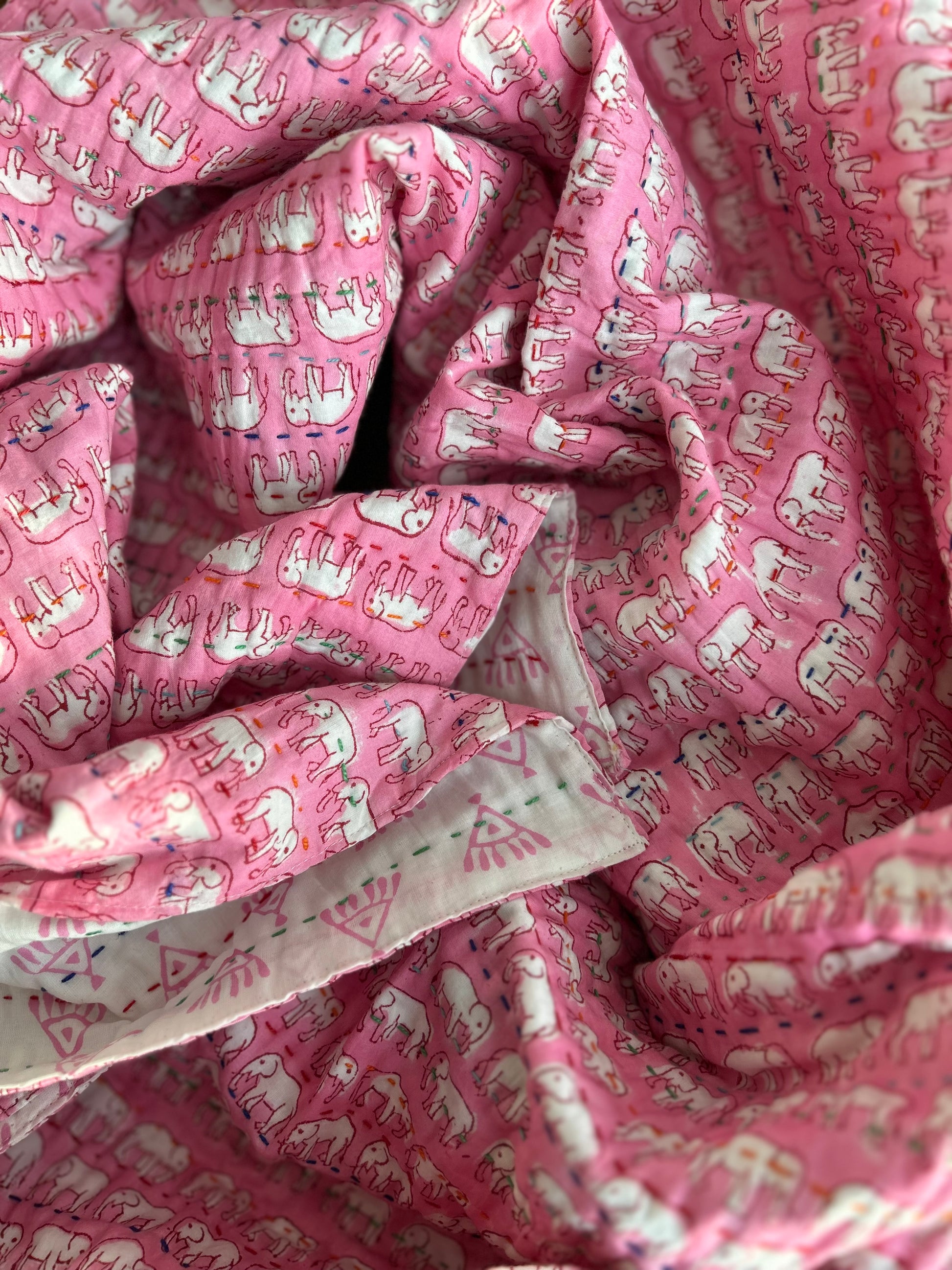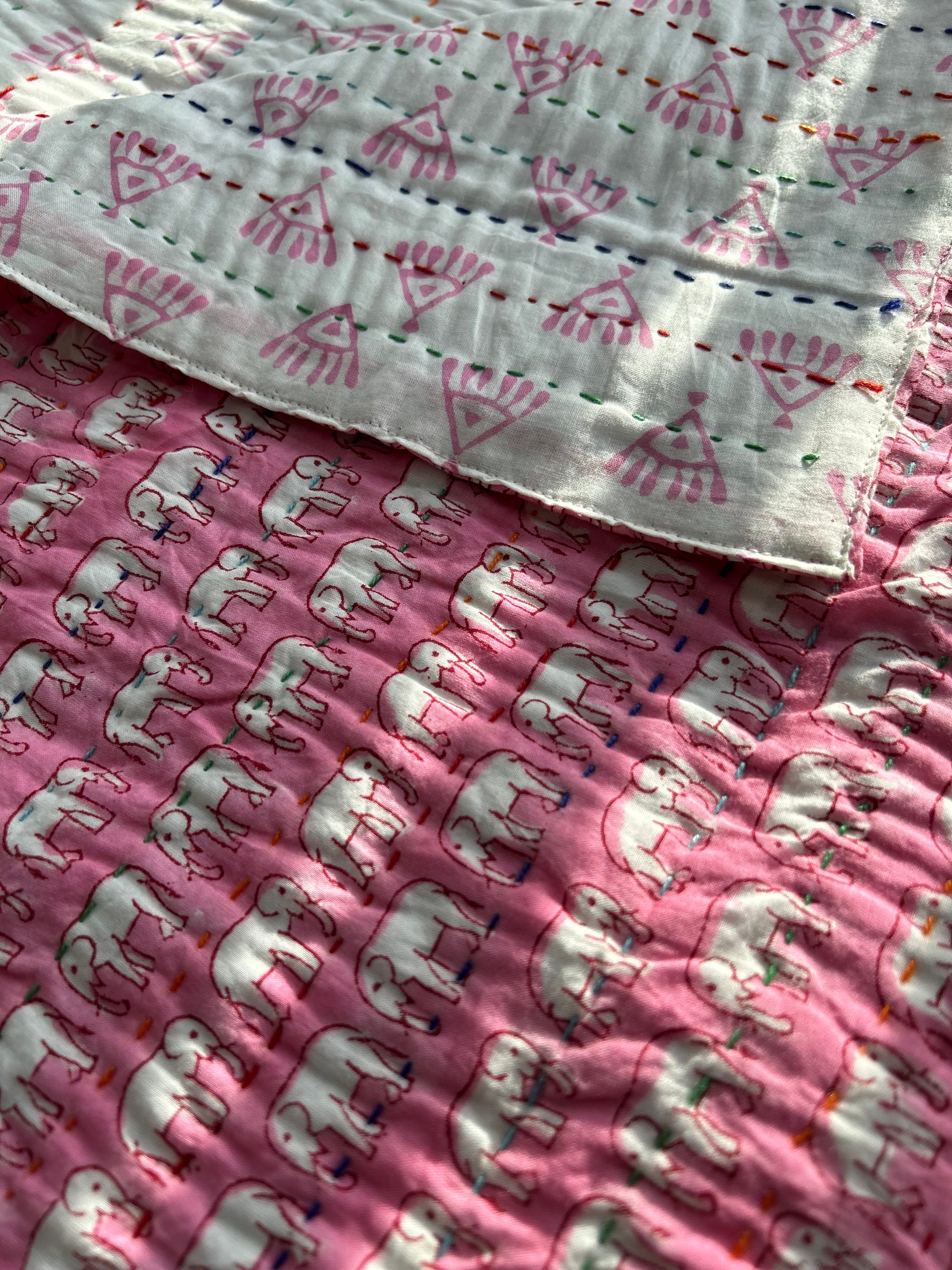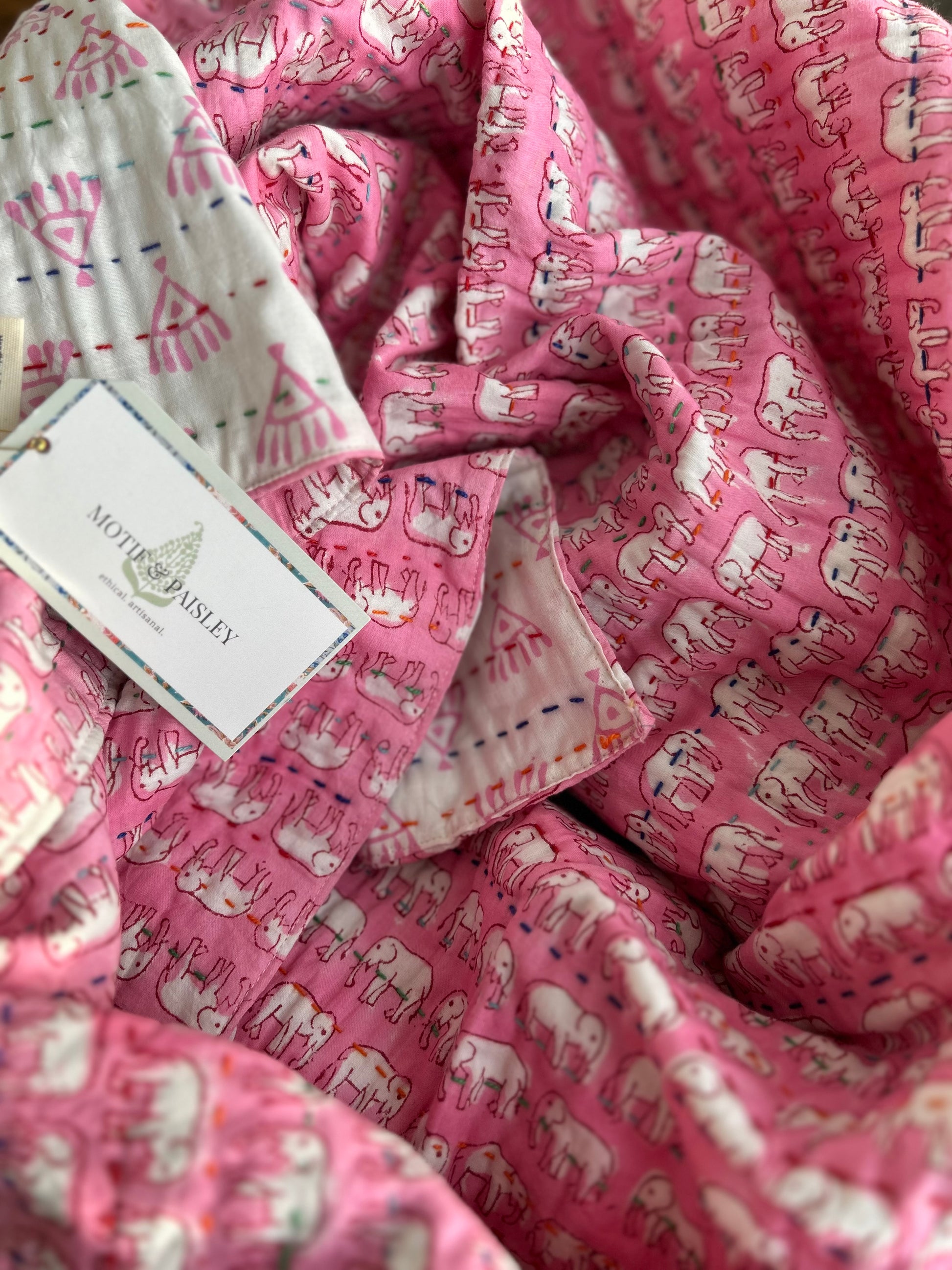 Tusker Cotton Blockprinted Baby Blanket (Lightly Quilted)