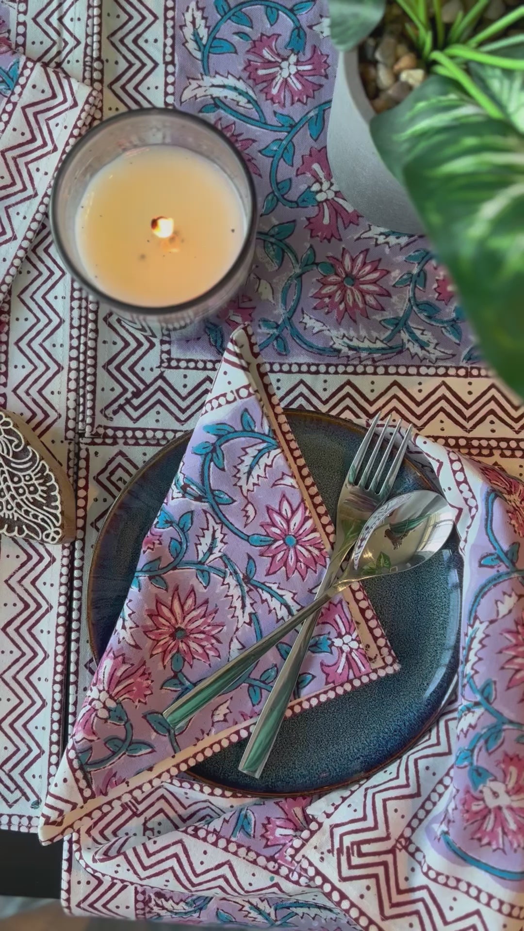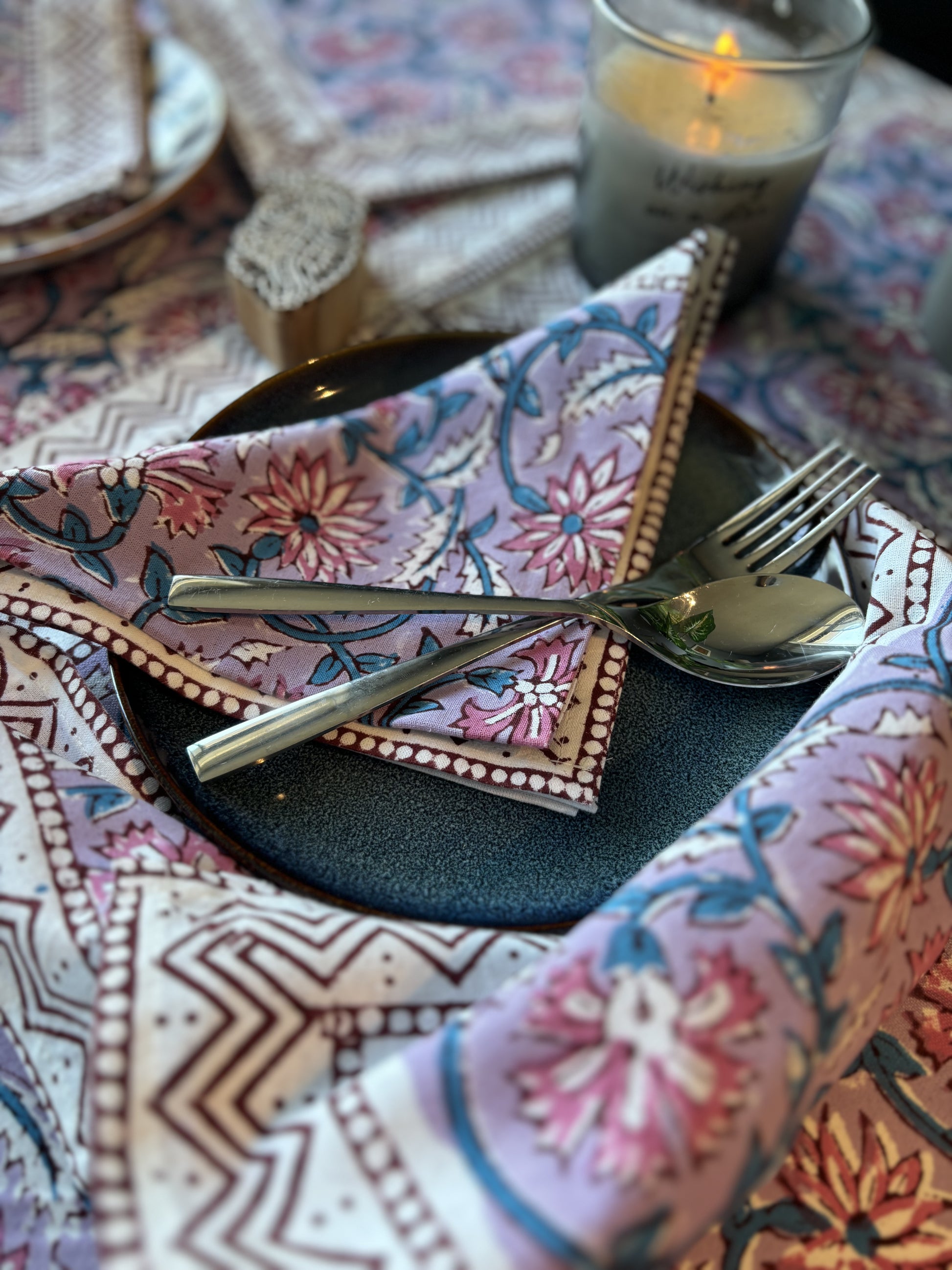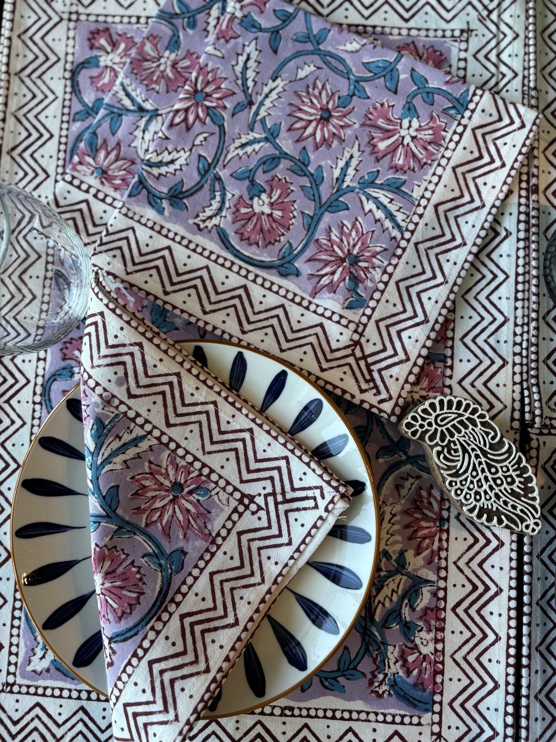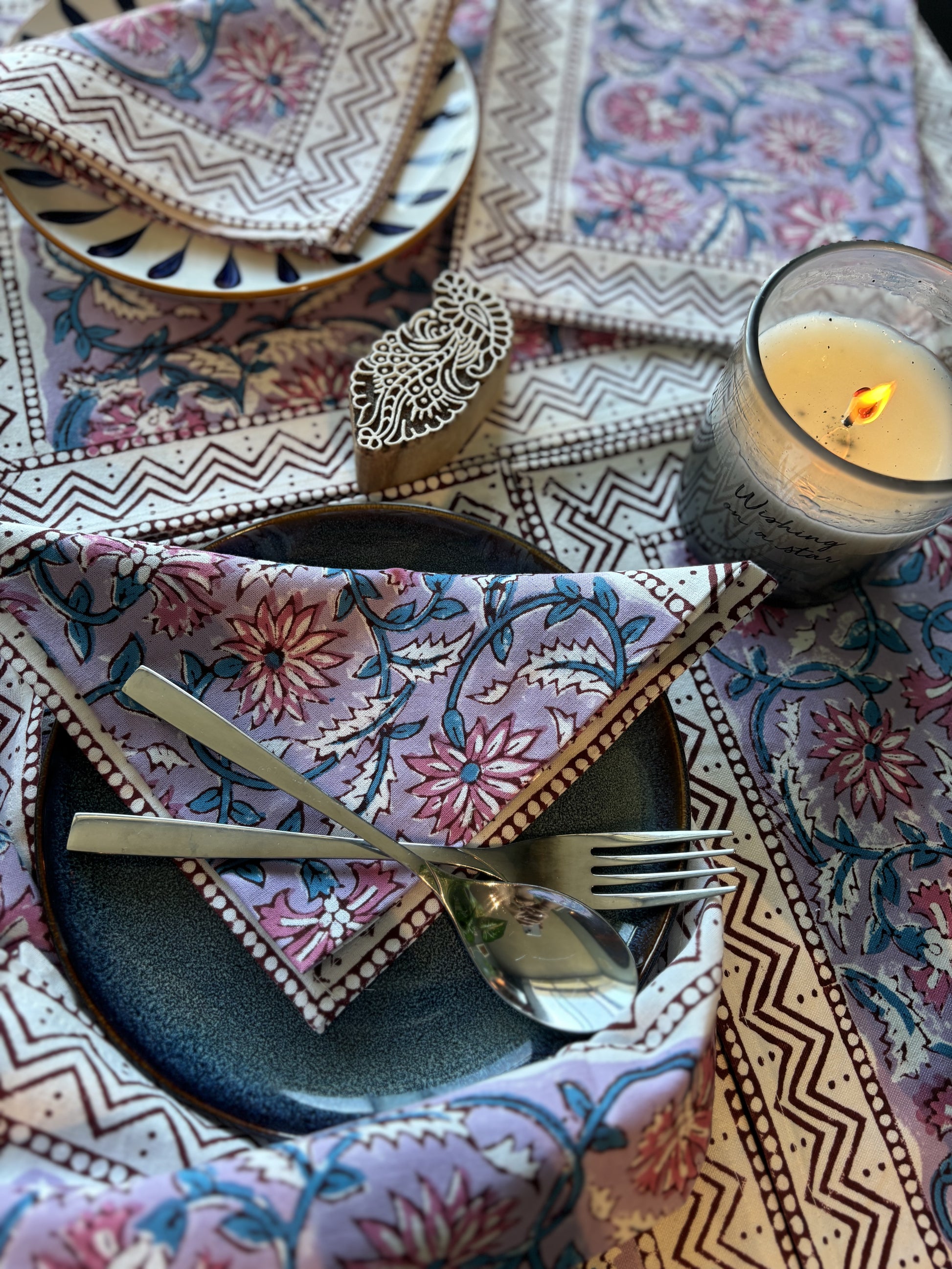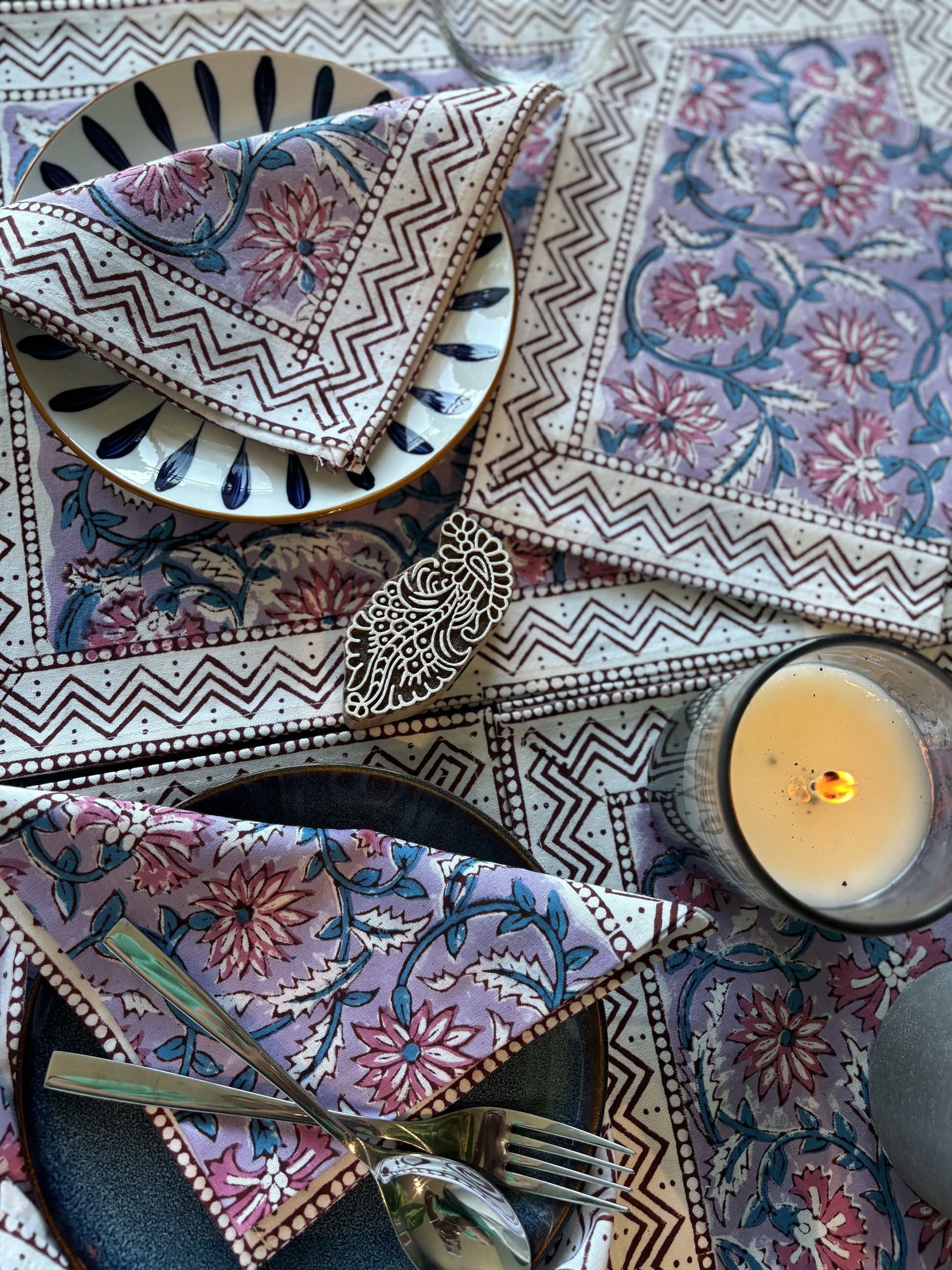 Lavender Blue Blockprinted Placemats & Napkins Set