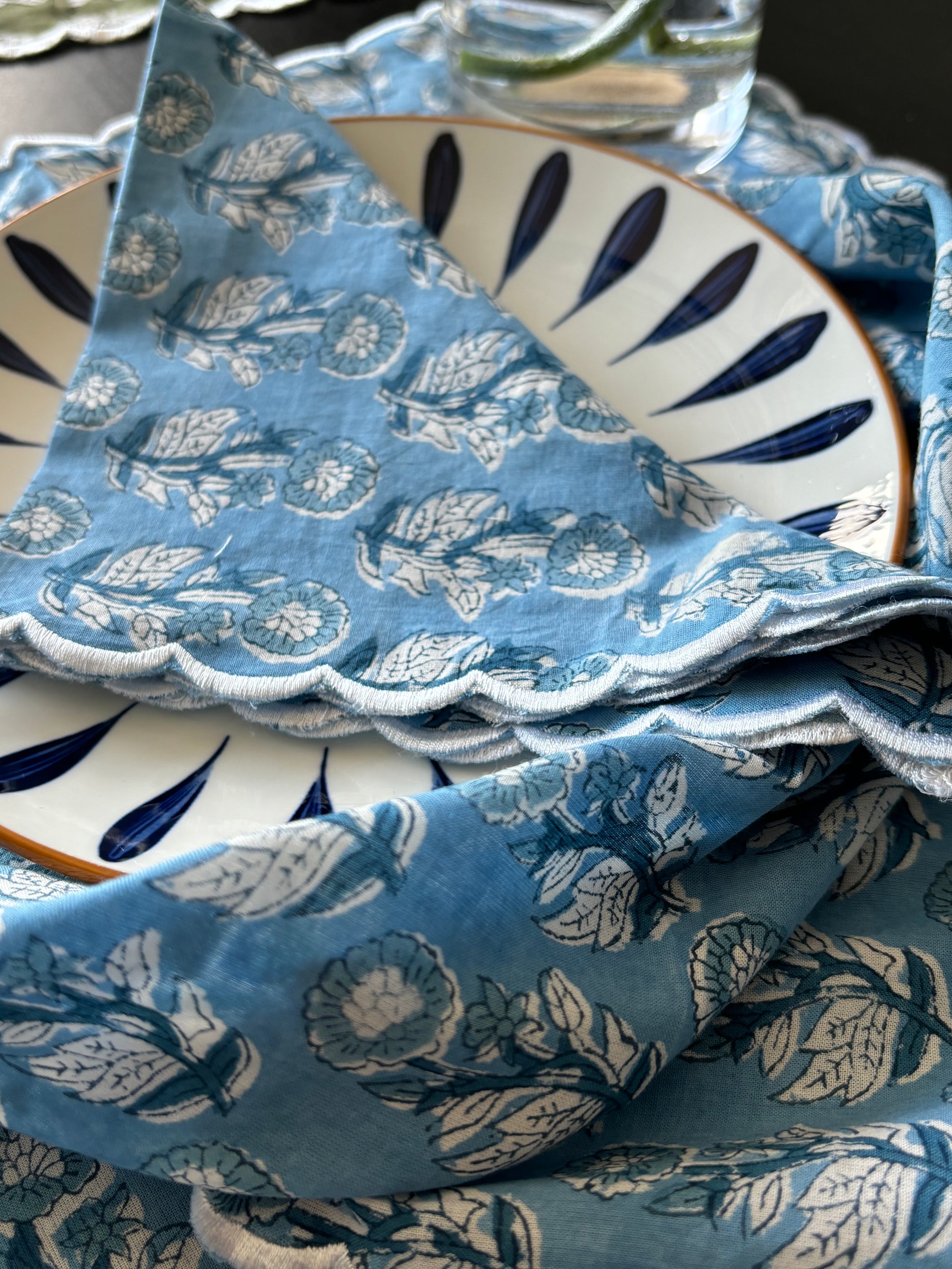 Light Blue Scalloped Edge Table Napkin
