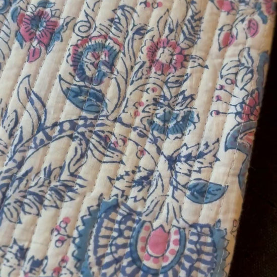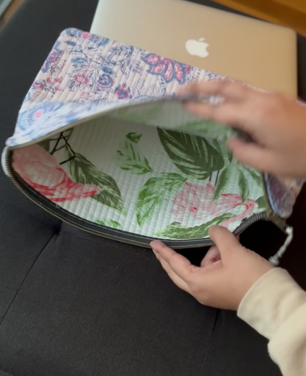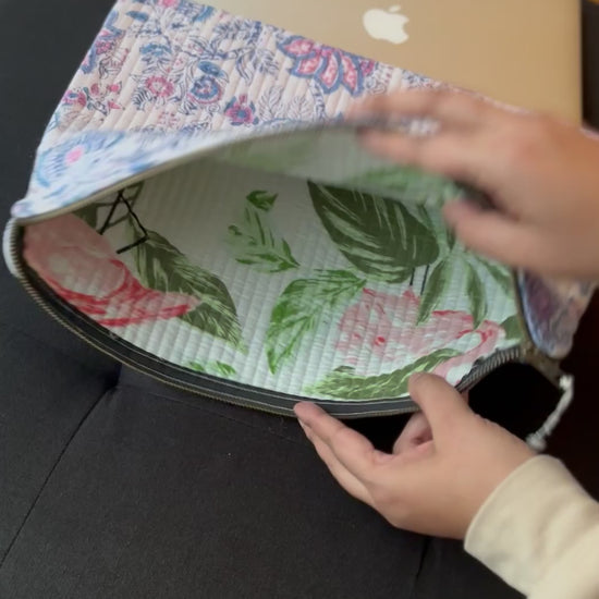 Quilted Blockprinted MacBook/Laptop Sleeve. The quilted fabric ensures your laptop fits snugly, while the unique design adds a sense of individuality to your laptop. Keep your laptop safe in style.